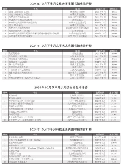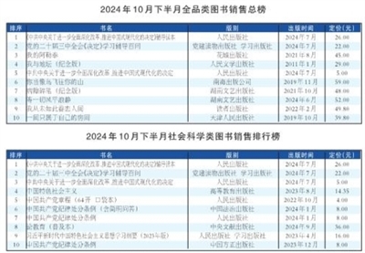 为了及时反映市场行情,为出版社、书店营销、选品提供参考,为读者阅读、购书提供指南,本报每半月刊出一次图书销售排行榜,以服务业界与读者。半月图书销售排行基于“国家出版发行信息公共服务平台”的销售数据和商报·奥示“中国出版业市场监测系统”线下ERP数据、线上监测数据,由全品类总榜和社会科学、文化教育、文学艺术、少儿读物、科技生活5个分类榜组成,均按销量降序排列。(报载各榜TOP10;各榜TOP20见商报官微、官网)